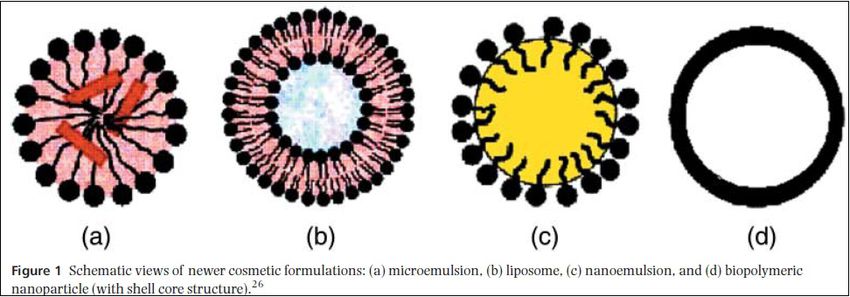 - Liposomes- Liposomes encapsulate water and lipid-soluble pharmacologically and cosmetically active components. Liposomes favor the disposition of encapsulated active ingredients in the epidermis and dermis, while the permeation rate is decreased. This helps to fix active ingredients to the outermost skin layers as desired for cosmetic products.Cevec,1997
