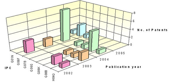 Around 423 patents have been published in the span of 4.2 years from 2000 till February 2005. The major market in RFID-based supply chain applications appears to be the United States.