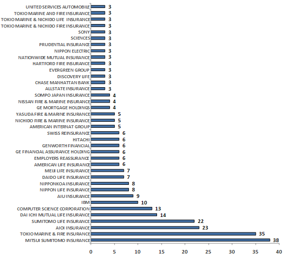 - Maximum number of patents file under life insurance category (39) followed by