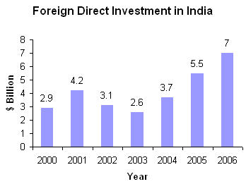 - Foreign Direct Investment inflows are rapidly growing in India and have reportedly reached an all-time high of $7 billion last year, doubling from just 6 years ago