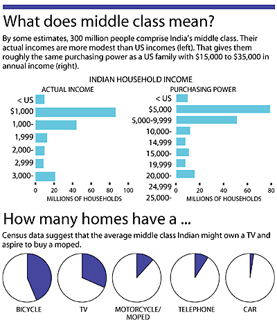 - The Indian middle class is 300 million people with a purchasing power of US families with $15,000-$35,000 in annual income