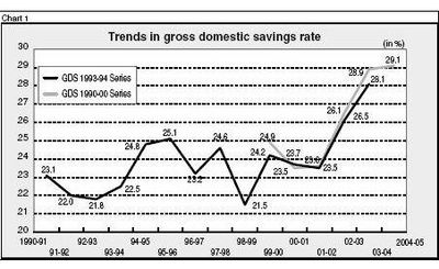 | Savings as percentage of GDP | 29.1% in FY 2004 and 25.9% in FY 2005 |