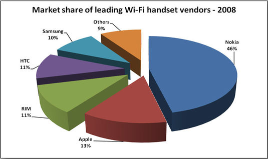 The growth of dual mode mobile handset units and the market share of leading Wi-Fi handset vendors is shown below: