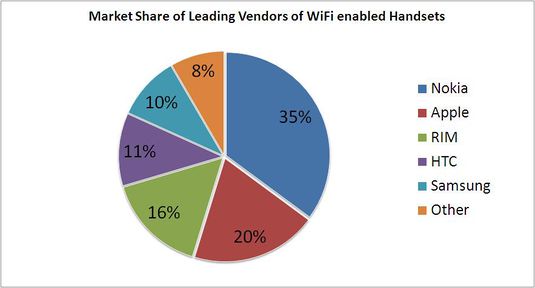The growth of dual mode mobile handset units and the market share of leading Wi-Fi handset vendors is shown below: