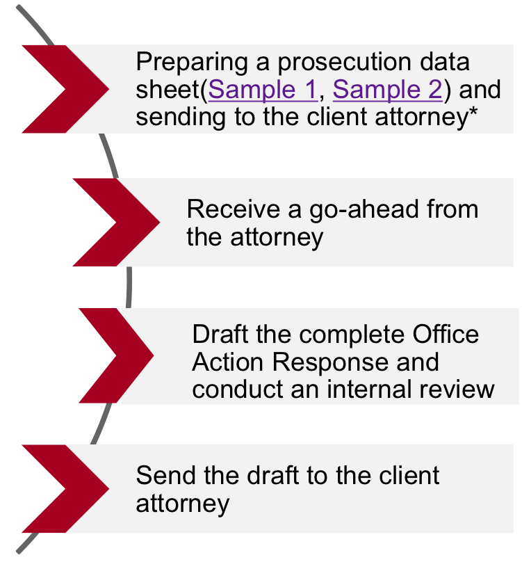 - Note:Preparing a prosecution data sheet is optional. Dolcera can send the office action response draft to the client without preparing the prosecution data sheet. The process can be adapted according to the client needs.