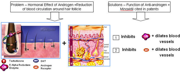 - Combination of Minoxidil + Anti-androgen (double action) composition for effective treatment of Male-Pattern Baldness