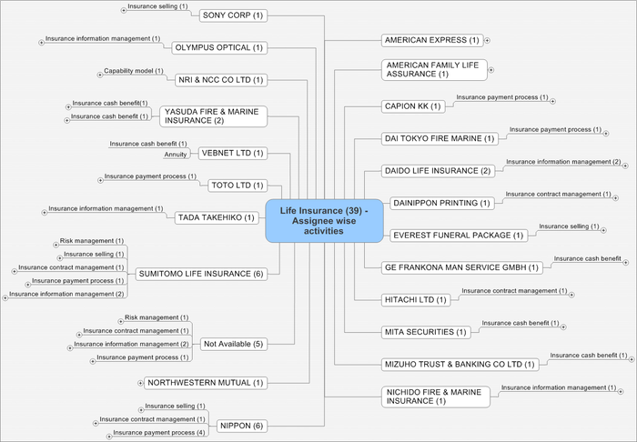Life insurance - Assignee wise patent distribution