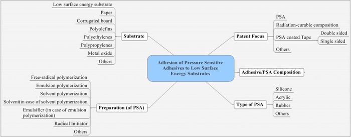 As it is evident from the the technology tree below, although the IP activity in the area of Pressure sensitive adhesive was initiated during 1970s, companies are continuously trying new combinations of different components.