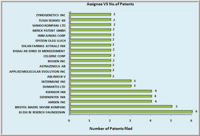 | 3 | Key assignee with drug names | Assignee/Applicant: Centocor OR (Johnson ADJ2 Johnson) OR (Mitsubishi ADJ 1Tanabe ADJ1 Pharma*) OR (Xian ADJ1 Janssen) OR (Schering-Plough) OR Abbott OR (BASF ADJ 1Knoll) OR (Cambridge ADJ1 Antibody ADJ1 Technology) OR Medimmune OR (UCB ADJ1 Pharma) AND Keywords in Claims, Tittle and Abstract: Simponi OR Remicade OR Humira OR Cimzia |