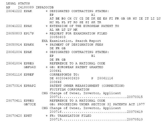 - Legal status display format in the STN - INPADOCDB, RUSSIAPAT databases