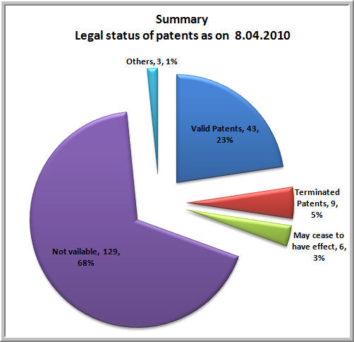 Search logic: Micropatent-INPADOC search bibliographic data for 71 countries and legal status for 42. A search strategy based out of keywords and classes was built to search patents having country code RU (Russia) and EA (Eurasia) in Micropatent INPADOC