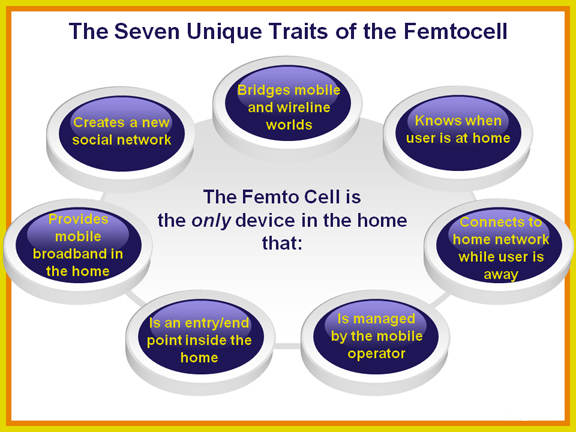 Femtocells can enable new services because they have seven unique traits that set them apart from all the other devices in the home in terms of service delivery. They are:
