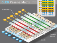 PMOLEDs are easy to make, but they consume more power than other types of OLED, mainly due to the power needed for the external circuitry. PMOLEDs are most efficient for text and icons and are best suited for small screens (2- to 3-inch diagonal) such as those you find in cell phones, PDAs and MP3 players. Even with the external circuitry, passive-matrix OLEDs consume less battery power than the LCDs that are currently used in these devices.[source]