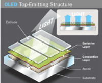 Top-emitting OLEDs have a substrate that is either opaque or reflective. They are best suited to active-matrix design. Manufacturers may use top-emitting OLED displays in smart cards.[source]
