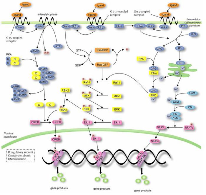 Recent research progress (year 2007) in the area of G-proteins is illustrated below, with interactive gene linking.