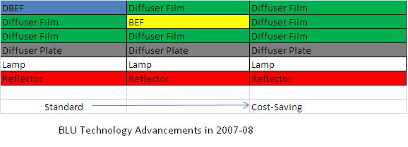 - During 2007-2008 BLU technology was undergoing lot of advancements to come up with newer cost saving ways of manufacturing.