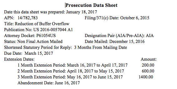 - Provides the extension dates after the statutory period and the corresponding fees applicable for each extension